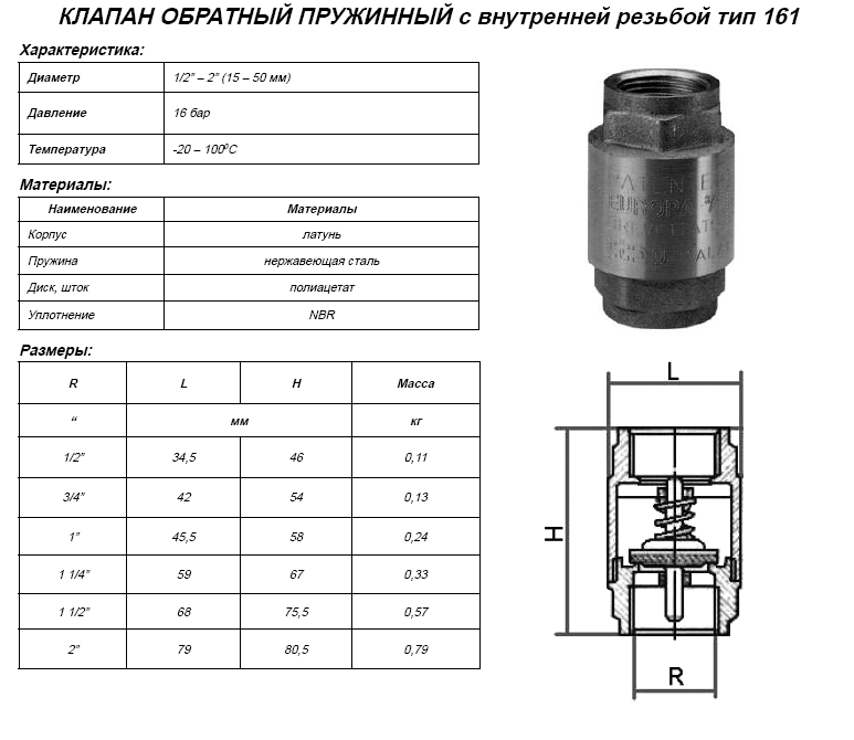 Виды обратных клапанов и основные технические характеристики