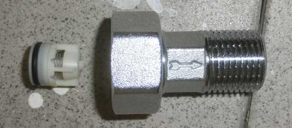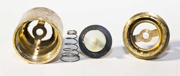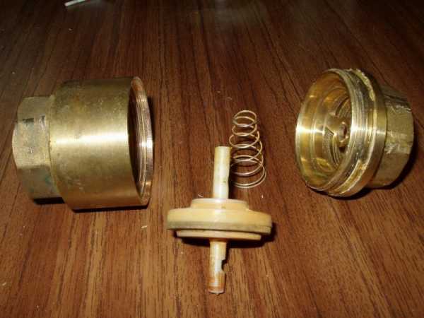 При снижении давления воды ниже возможного предела золотник выпадает и закрывает проходной канал.