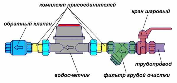 Так же для счетчиков воды неплохо поставить возвратный клапан. Он защитит счетчик от гидроударов, возникающих в системе при работе неисправных сантехнических приборов. Несомненно, это благоприятно скажется на его сроке службы. Его нужно ставить чуть дальше после приборов учета.