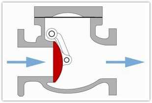 Во время установки подъемного обратного клапана нужно наблюдать за тем, чтобы ось золотника оставалась в вертикальном положении. Обратный поворотный клапан имеет ось поворота «захлопки», которую следует расположить выше, чем ось находится потока.