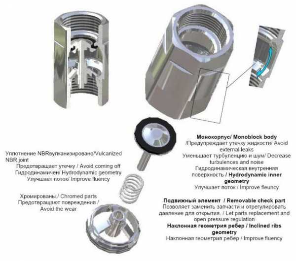 Какие элементы включает в себя устройство обратного клапана для воды: