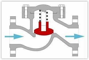 Принципы работы возвратного шарового клапана схожи по действию с межфланцевым пружинным дисковым клапаном.