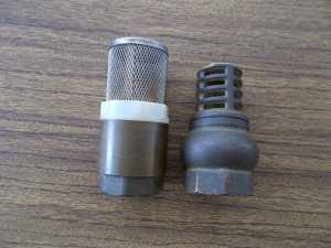 Эти два типа обратных клапанов ( смотри фото-1 и фото-3) снабжены металлическими сетчатыми фильтрами и устанавливаются строго на входе во всасывающую трубу трубопровода автономного водоснабжения.Для этого есть специальное устройство, которое продается вместе с гидрофором.