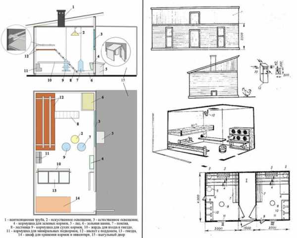 Важно распланировать курятник не только снаружи, но и внутри. Элементы его интерьера размещают по такому принципу:
