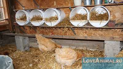 Можно сделать своими руками гнезда из обычных ящиков, которые необходимо расположить на подходящих местах. Еще один вариант — использование готовых пластиковых гнезд. Этот материал является очень практичным, так как его очень просто вымыть. Необходимо только положить побольше сена внутрь. Например, можно использовать широкие пластиковые ведра.