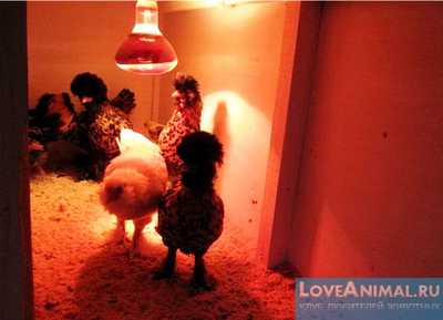 Что касается освещения, то инфракрасные лампы можно использовать и для него, и для обогрева. Но в ночное время даже их тусклый свет будет нервировать птиц, так что обязательно нужно выключать лампы после окончания светового дня — он составляет порядка 15 часов.