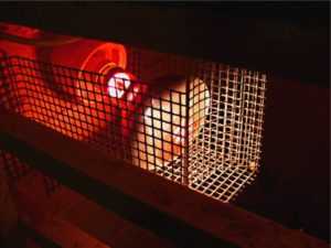 Хорошим вариантом освещения птичника зимой является красная лампа. Дополнительно внутри курятника обеспечивается обогрев. Вешают ИК лампы на высоте минимум 50 см от обогреваемого объекта, заключив их внутрь металлической сетки. Защита нужна, чтобы куры не разбили стеклянную колбу.