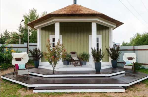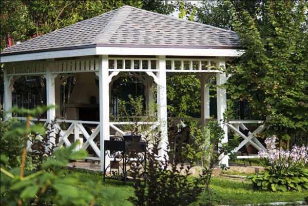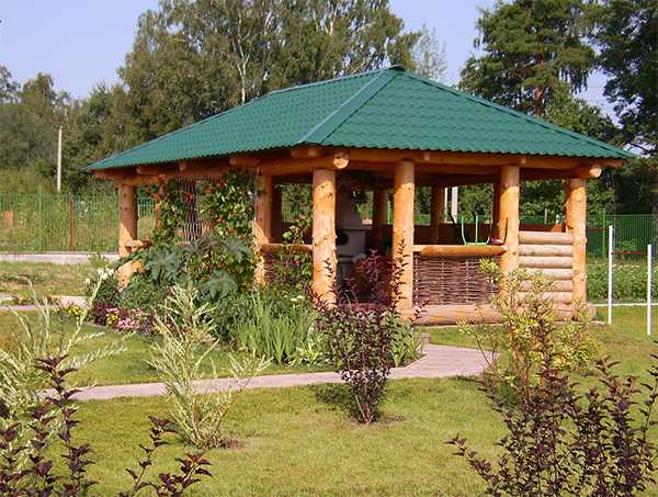 - Сад. Площадки в саду смотрятся оригинально и завораживающе. Но минус – дополнительное строительство навеса. В качестве альтернативы устанавливаются беседки во дворе частного дома своими руками. Беседки выполняются из деревянного массива, смотрятся элегантно и дорого.