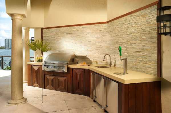 Летняя кухня служит отличным местом для отдыха и времяпровождения. Поэтому её проектированию и отделке уделяется максимум внимания. Вариантов размещения и способов отделки много. Для создания уникального дизайна площадки необходимо лишь иметь желание и фантазию. Но как показывает практика, популярностью пользуются закрытые площадки, облицованные камнем. Такая отделка долговечная и привлекательная. Но чем отделывать собственную летную кухню решать только вам.