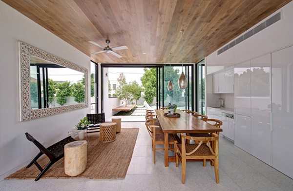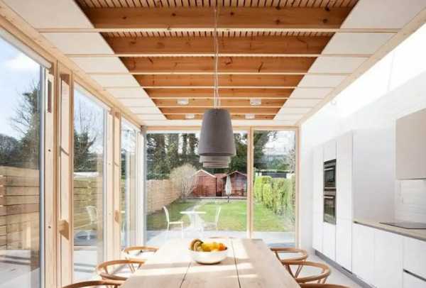 Отделка деревом на закрытых кухнях смотрится изысканно и дорого. Дерево дорогостоящий материал, поэтому отделывать им всю площадь пространства дорого. Поэтому на пол выкладывается из дерева, а стены и потолок выполняются из вагонки.