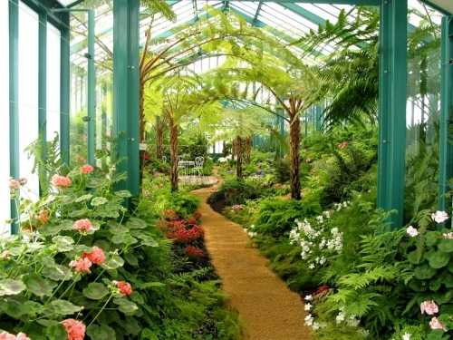 - Если размер оранжерейного зимнего сада позволяет, то в нем делают сеть дорожек, устанавливают скамейки и монтируют пешеходное освещение. Так же, он может быть разделен на зоны, каждая из которых представляет флору определенных регионов или стран.
