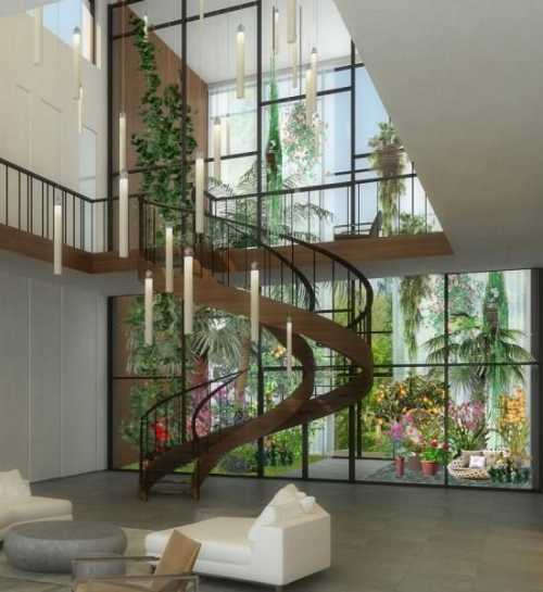 - Этот вид зимнего сада наиболее сложный в исполнении. Главное его назначение – культивирование растений. Это подразумевает выращивание редких или экзотических представителей флоры и их размножение. Оранжерею строят только в загородных домах, так как требуются большие площади и много грунта. Очень часто в них растут плодовые деревья, которые не пригодны для выращивания в открытом грунте данного региона. Так, на северо-западе России в оранжереях выращивают бананы, персики и прочие южные культуры.