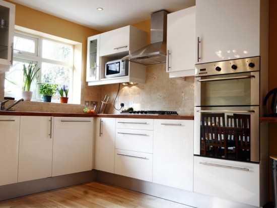 Расположение техники — прежде всего, хочется сказать о бытовой технике. Она должна располагаться так, чтобы не мешать проходу. Лучше всего, если она будет встраиваемой и будет создавать единую композицию с кухонным гарнитуром. Рабочая поверхность для удобства работы должна составлять от 3 до 6 метров. Это можно обеспечить, предварительно продумав при необходимости перенос мойки, плиты и холодильника. Сделать это не так уж сложно, но в будущем это обеспечит максимальный комфорт во время приготовления пищи.