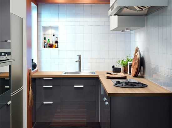 Следует отметить, что маленькой считается кухня, площадь которой составляет менее 8 кв.м. или же кухни неправильной формы, узкие или проходные. Для каждого из этих вариантов можно подобрать свою мебель и технику, которые позволят одновременно сделать помещение красивым и функциональным.