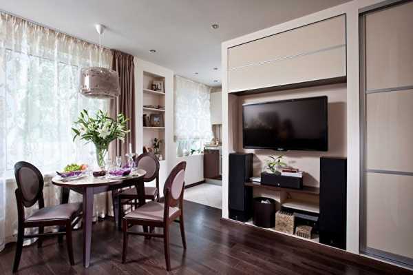 Планировка однокомнатной квартиры 40 кв м настолько неудачна, что некуда пристроить телевизор? Не беда. Сделайте под него нишу в стене. Кстати, таким же образом можно поступать и с другими элементами обстановки. Обустроив нишу просто вывести из интерьера громоздкий книжный шкаф.