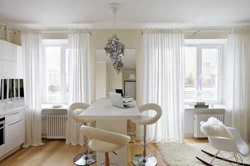 - Не рекомендуется использовать плотные шторы, так как основная часть света в обеденной зоне должна идти от окон.