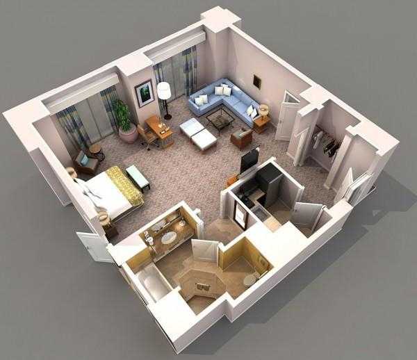 Примеры планировки однокомнатной квартиры студии