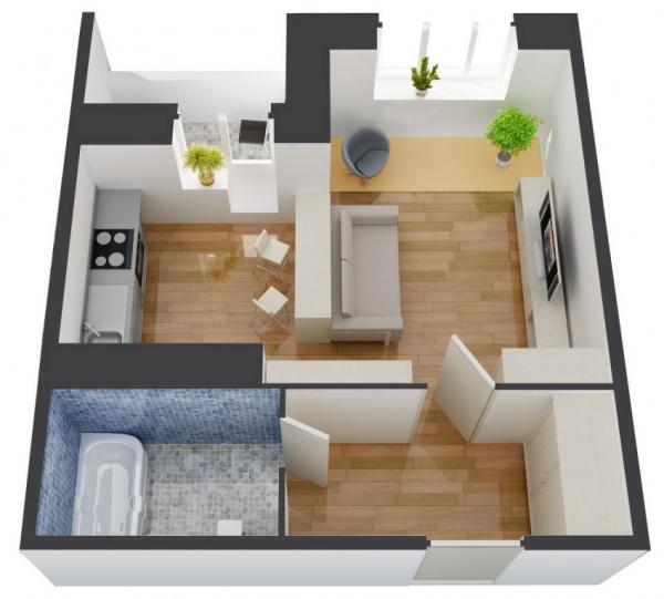 - Живите один или не нуждаетесь в планировке квартиры-студии, которая обеспечивает максимальную конфиденциальность.