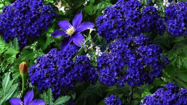 - Гелиотроп – густая шапка ярко-синих или густо-фиолетовых соцветий.