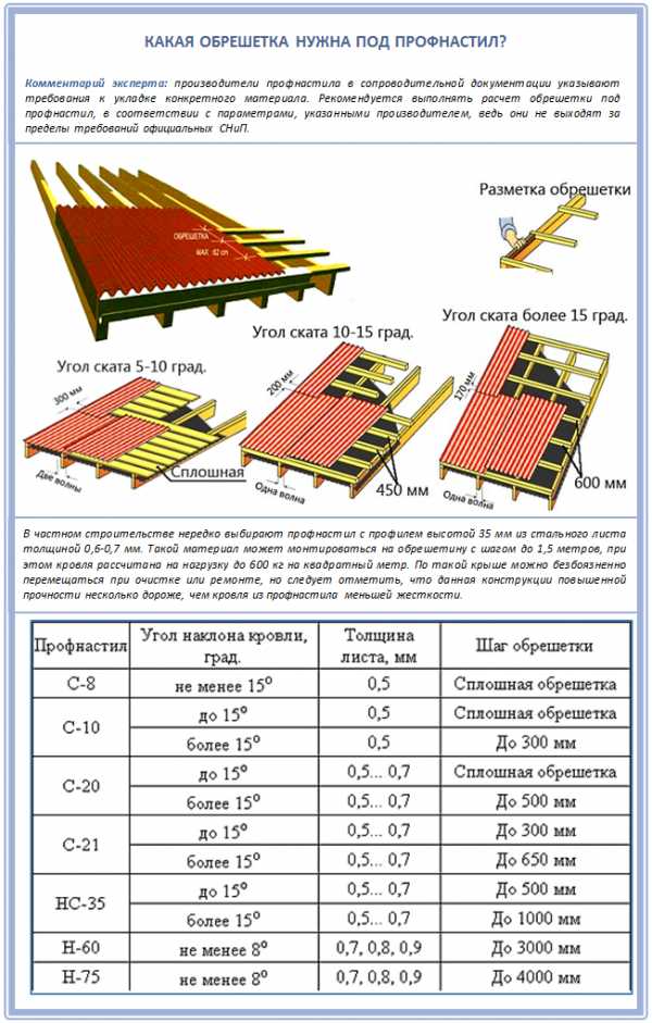Вот хороший пример достаточно плотной обрешетки под профнастил: