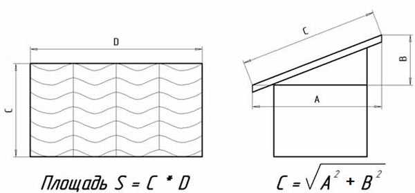 Расчет площади ската односкатной крыши