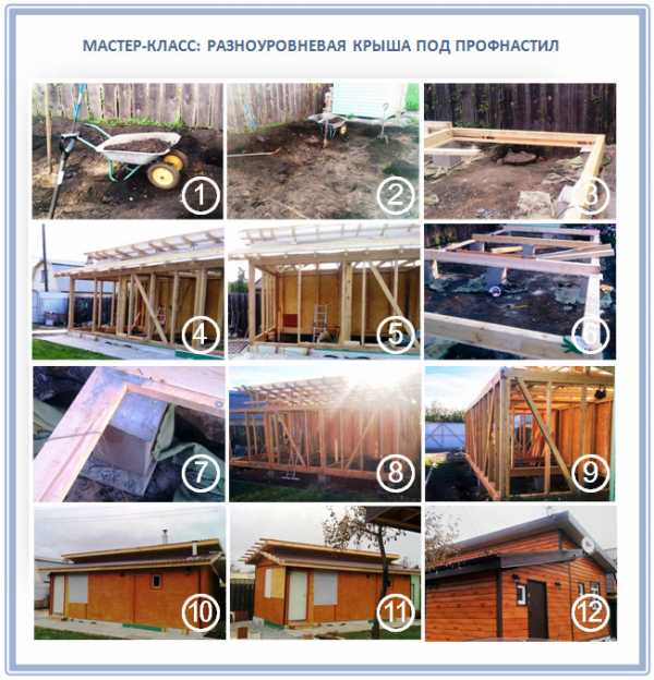 Итак, выбрали уклон односкатной крыши из профнастила и определились с ее конструкцией? Тогда строим – шаг за шагом: