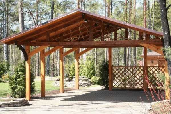 Навес для автомобиля на даче: фото сборной деревянной конструкции
