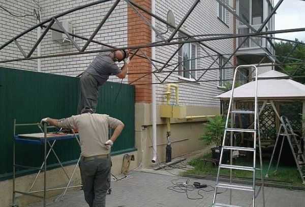 Привариваем трубы для крепления поликарбоната