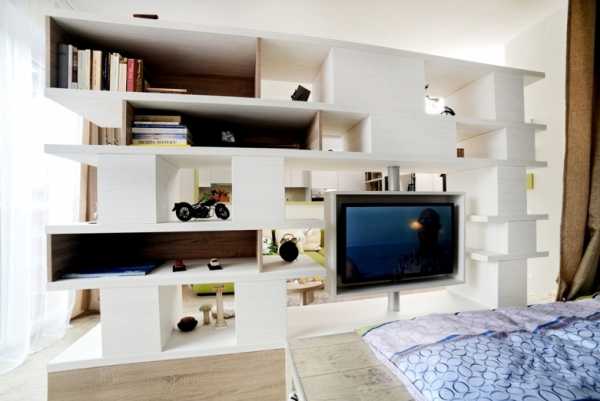 Π‘ΠΏΠ°Π»ΡΠ½Π°Ρ Π·ΠΎΠ½Π°. Π§Π°ΡΡΠΎ ΠΎΠ΄Π½ΠΎΠΌΡ ΠΏΠΎΠΌΠ΅ΡΠ΅Π½ΠΈΡ ΠΏΡΠΈΡ ΠΎΠ΄ΠΈΡΡΡ ΡΠΎΠ²ΠΌΠ΅ΡΠ°ΡΡ Π²Β ΡΠ΅Π±Π΅ ΡΡΠ½ΠΊΡΠΈΠΈ Π΄Π²ΡΡ ΠΈΠ»ΠΈ ΡΡΠ΅Ρ . ΠΡΠΎ Π½Π΅Β ΡΠΎΠ»ΡΠΊΠΎ Π²ΡΠ½ΡΠΆΠ΄Π΅Π½Π½Π°Ρ Π½Π΅ΠΎΠ±Ρ ΠΎΠ΄ΠΈΠΌΠΎΡΡΡ, Π½ΠΎΒ Π·Π°ΡΠ°ΡΡΡΡ ΠΈΒ ΠΎΡΠ΅Π²ΠΈΠ΄Π½ΠΎΠ΅ ΡΠ΄ΠΎΠ±ΡΡΠ²ΠΎ. ΠΒ Π΄Π°Π½Π½ΠΎΠΌ ΡΠ»ΡΡΠ°Π΅ Π΄ΠΈΠ·Π°ΠΉΠ½-ΠΏΡΠΎΠ΅ΠΊΡ ΠΎΠ΄Π½ΡΡΠΊΠΈ Π²ΠΊΠ»ΡΡΠ°Π΅Ρ Π²Β ΡΠ΅Π±Ρ ΡΠΎΠ²ΠΌΠ΅ΡΠ΅Π½ΠΈΠ΅ Π΄Π²ΡΡ Π·ΠΎΠ½Β β ΡΠΏΠ°Π»ΡΠ½ΠΈ ΠΈΒ ΡΠ°Π±ΠΎΡΠ΅Π³ΠΎ ΡΠ³ΠΎΠ»ΠΊΠ°Β β Π²Β ΠΎΠ΄Π½ΠΎΠΌ ΠΏΠΎΠΌΠ΅ΡΠ΅Π½ΠΈΠΈ. ΠΠΈΠ·Π°ΠΉΠ½Π΅Ρ ΠΏΡΠ΅Π΄Π»ΠΎΠΆΠΈΠ»Π° ΡΠ°Π·Π΄Π΅Π»ΠΈΡΡ Π±ΠΎΠ»ΡΡΡΡ ΠΊΠΎΠΌΠ½Π°ΡΡ ΠΏΡΠΈ ΠΏΠΎΠΌΠΎΡΠΈ ΡΡΠ΅Π»Π»Π°ΠΆΠ°. ΠΡΠΊΡΡΡΡΠΉ ΡΡΠ΅Π»Π»Π°ΠΆ Π½Π΅Β Π²ΠΎΡΠΏΡΠΈΠ½ΠΈΠΌΠ°Π΅ΡΡΡ ΠΊΠ°ΠΊ ΡΡΠ΅Π½Π°, Π½ΠΎΒ ΡΠΎΡ ΡΠ°Π½ΡΠ΅Ρ ΠΎΡΡΡΠ΅Π½ΠΈΠ΅ ΡΠ΅Π΄ΠΈΠ½Π΅Π½Π½ΠΎΡΡΠΈ.