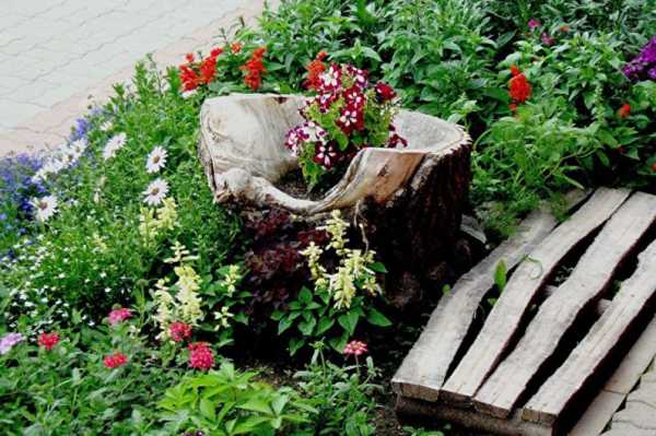 Цветник на пнях