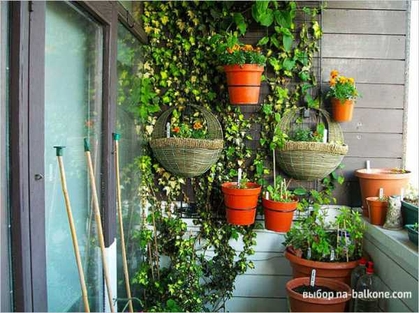 Вьющиеся растения превратят балкон в обильно цветущую садовую беседку или обвитый плющом некий английский дворик. Кроме того, в соседстве с плющом будут выгодно смотреться разноцветная петуния и другие яркие цветы.