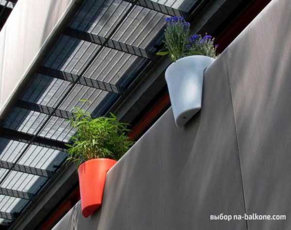 Специальные горшки, сделанные в виде накладок на перила. Сэкономить место получится также при помощи подвесных полок.