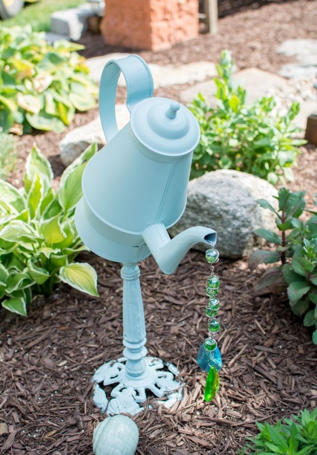 Эта идея декора в стиле шебби-шик отлично подходит для повседневного украшения сада, а также в качестве акцента в особом случае.