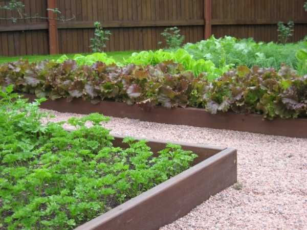 В емкости больших объемов можно высаживать сразу несколько культур, создавая оригинальные цветовые сочетания. К примеру: с нежно-зеленой листвой салата хорошо сочетаются красно-бордовые листья мангольда
