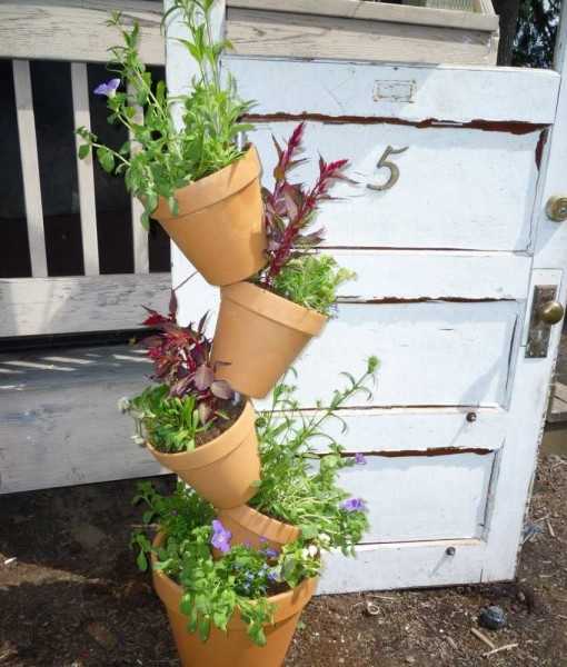 В качестве контейнеров можно использовать любые емкости: глиняные и пластиковые горшки, корзины, бочки, старую посуду. Ограничений в выборе емкостей для растений нет, единственное условие — они должны гармонично сочетаться с другими элементами декора.