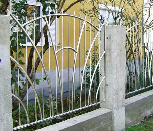 Пролеты, выполненные из нержавеющей стали, будут гармонично смотреться с любыми опорными столбами и, возможно, станут главным украшением комбинированного забора. Секции можно установить: