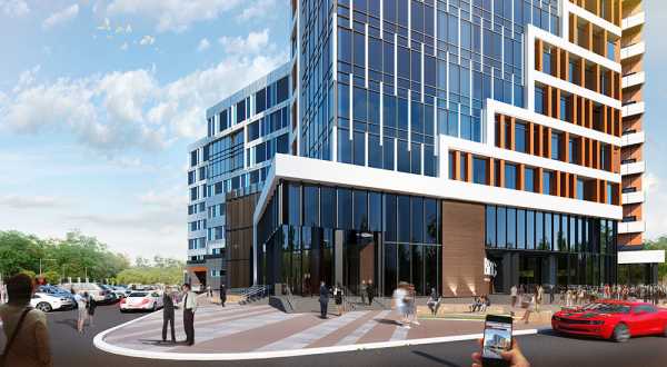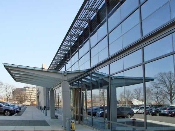 Рис. 8. Здание с витражным остеклением на оживленной трассе.