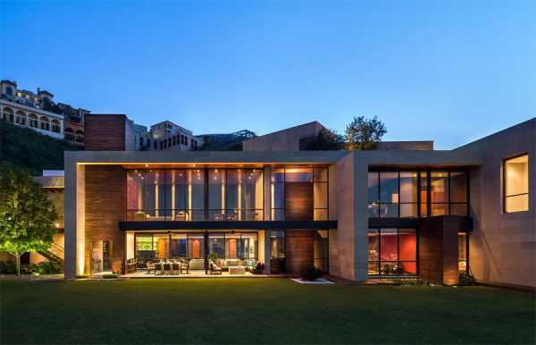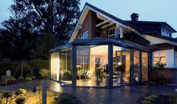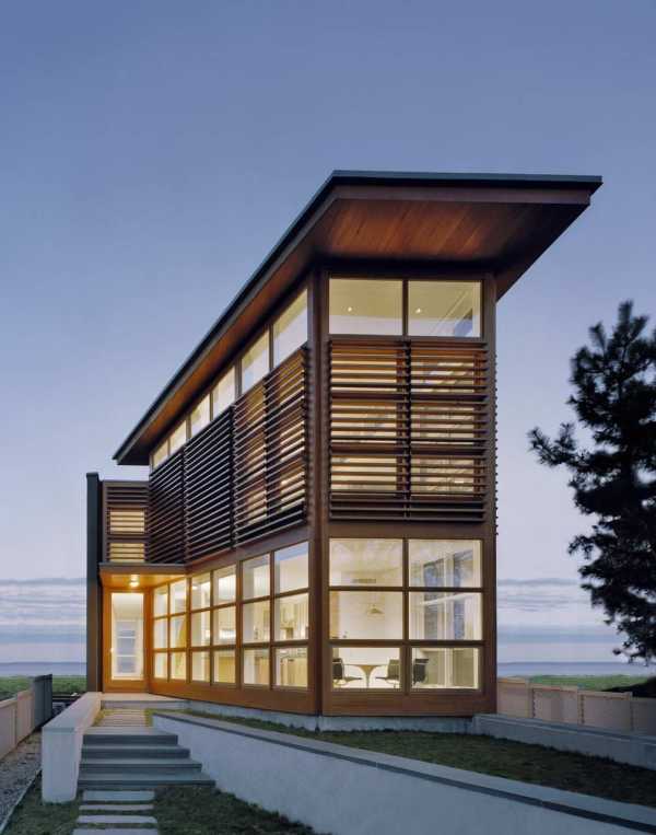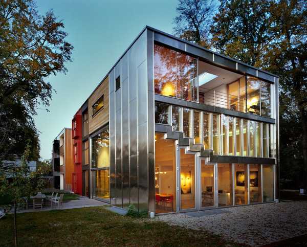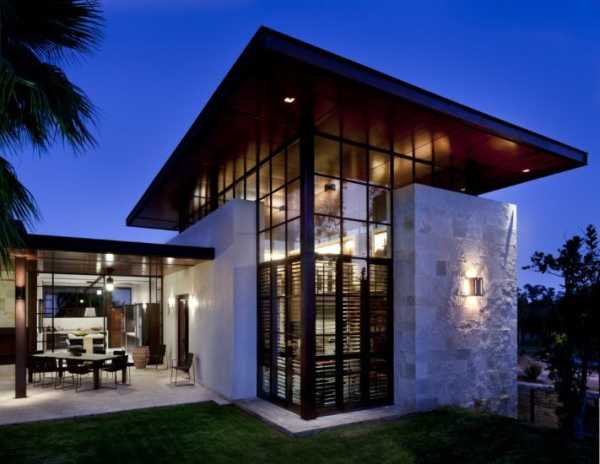 Дома с витражным остеклением прекрасно выглядят как в днем, так и вечером