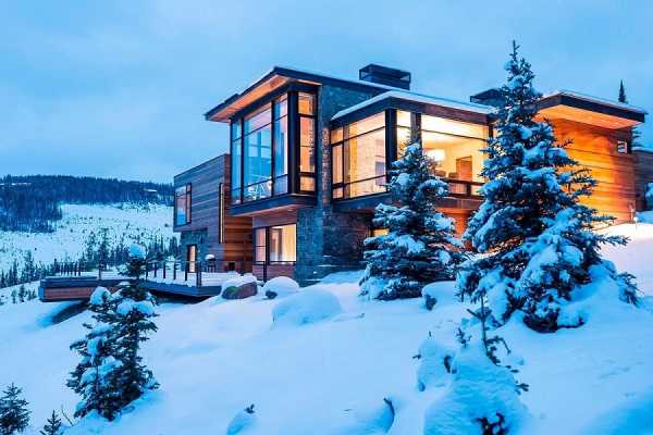 Высокая теплоизоляция позволяет использовать остекление в горных домах