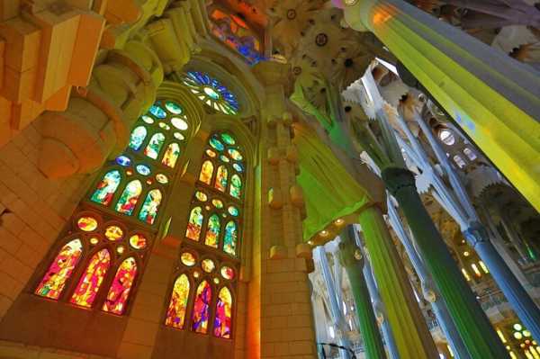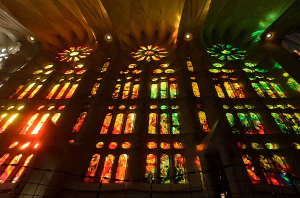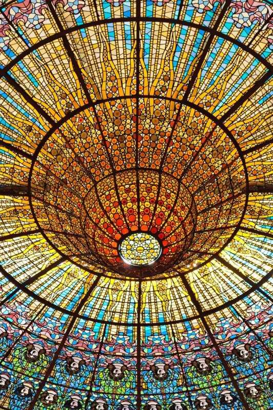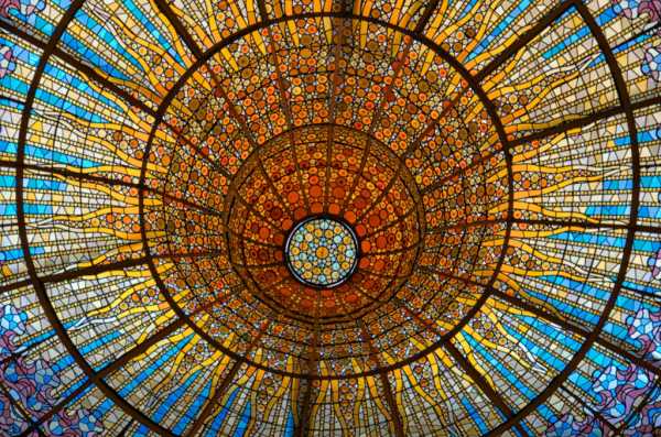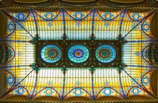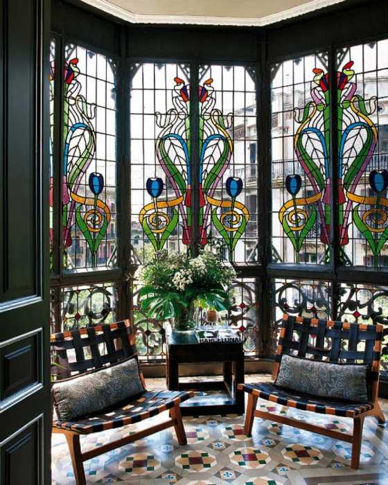Роскошное витражное окно, которое украшает интерьер одной из квартир в Барселоне, Испания.