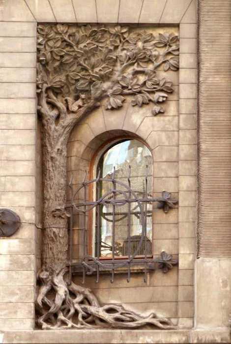 Окно в стиле арт-нуво, украшенное восхитительной лепкой. Дом Бальо (Casa Battlо), Барселона, Испания.