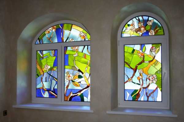 Во втором случае вместо прозрачного обычного стекла устанавливаются предварительно изготовленные витражи. Они имеют большую устойчивость к воздействию ультрафиолетовых лучей, а также могут монтироваться больших размеров. Это достигается прочностью и надежностью их конструкции.
