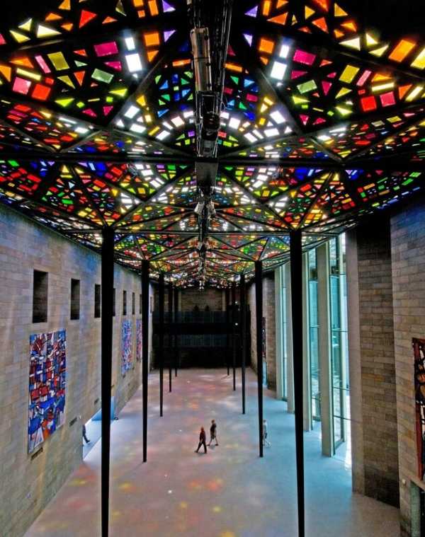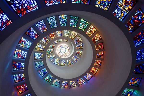 Наиболее часто цветные витражные системы применяются на стеклянных крышах или куполах различных зданий. Сами витражи могут быть выполнены при помощи разнообразных технологий – пленочной, заливной, классической наборной и т.д.