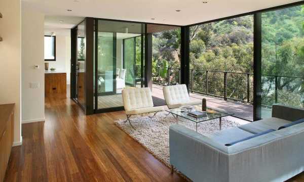 Такое остекление идеально впишется в интерьер гостиной. В зале можно сделать одну или две стены с большими окнами – все зависит от технической возможности и габаритов комнаты.
