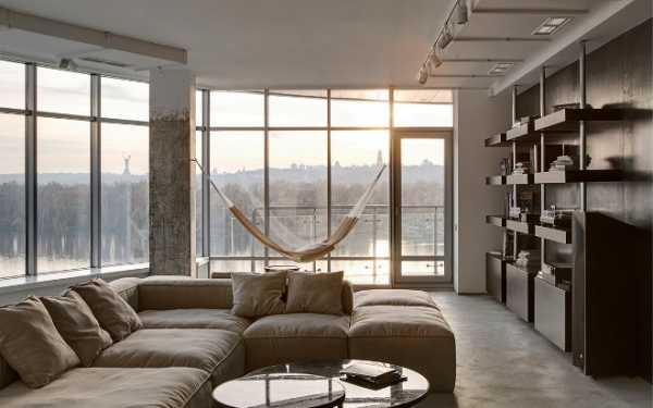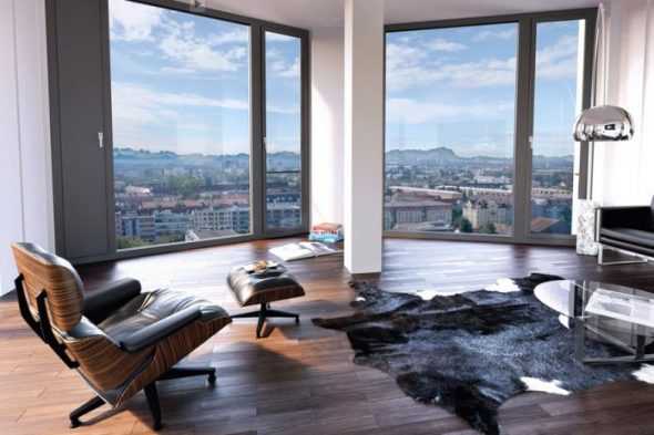 Интерьер с панорамными окнами подойдет практически для любой квартиры. Такой вариант застекления часто используют жители северных широт. В этих регионах особенно важно, чтобы в помещение проникало как можно больше света.