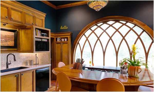 В загородных домах в помещении желательно застеклить целую стену. Окно часто делают раздвижным и совмещают с выходом на террасу. Если на кухне стоит обеденный стол, то его лучше поставить у окна. В классическом интерьере хорошо смотрятся эркерные панорамные стеклопакеты.
