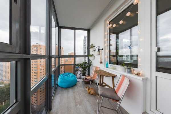 Здесь можно оборудовать зимний сад, кабинет, библиотеку. Желательно утеплить стены и пол, сделать современную отделку, поставить диван и превратить нежилые квадратные метры в зону отдыха. Панорамное остекление нужно для того, чтобы визуально увеличить пространство. Для стандартных балконов выбирают классические или угловые окна. Чтобы здесь было комфортно находиться в холодное время года, надо вынести батарею. Ставить ее нужно около стены.