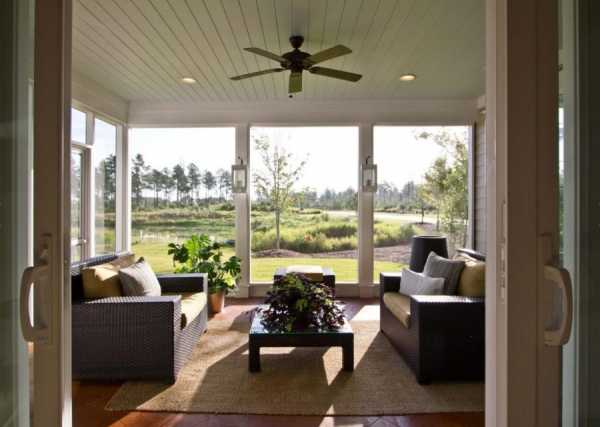 В помещении можно установить раздвижные или распашные панорамные стеклопакеты. Для зала важно подобрать ту модель, которая имеет не слишком широкий профиль. Тогда будет создаваться впечатление, что пейзаж за стеклом – продолжение вашей гостиной.