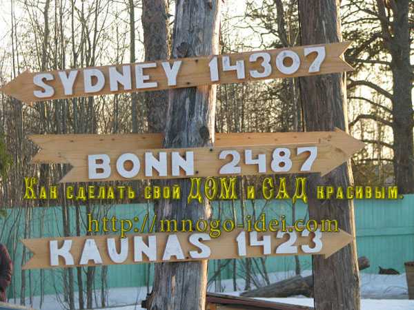 Вот такие указатели сделать несложно. Буквы можно вырезать из пенопропилена или из дерева и приклейте их к указателям на водостойкий клей.