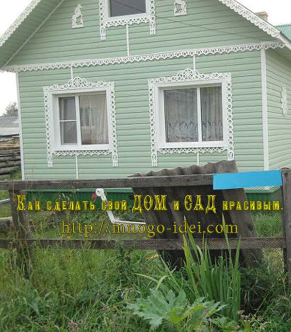 Наличники на сайдинге желательно не перегрузить резьбой. Для дачи это очень хороший вариант.